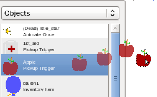 To insert an instance of an existing sprite onto the current level, you must first select it (in the Builder toolbox) and then simply drag it from the Toolbox onto the level canvas.