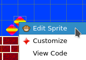 First select the sprite that you want to use an automatic goal by Right-Clicking on it and select Edit Sprite from the Pop-up Menu.