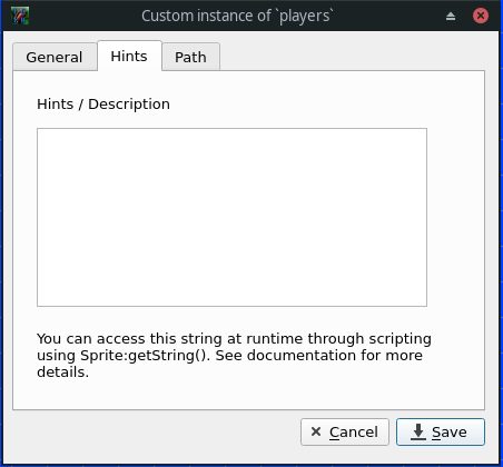 This is just a text string associated with this instance of the sprite. It can be retrieved though scripting using the Sprite:getString() function.