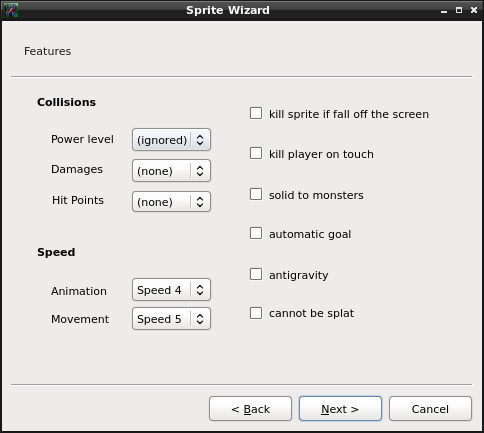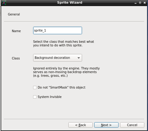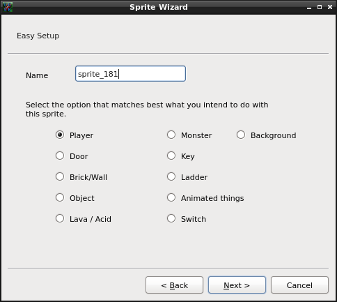 Please pick a role for your newly created sprite. Depending on your choice here, the pathway through the wizard will be drastically different.