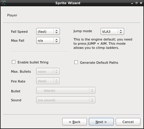 Enable Bullet Firing If this box is checked, the wizard will generate event code that allows the player to fire bullets.